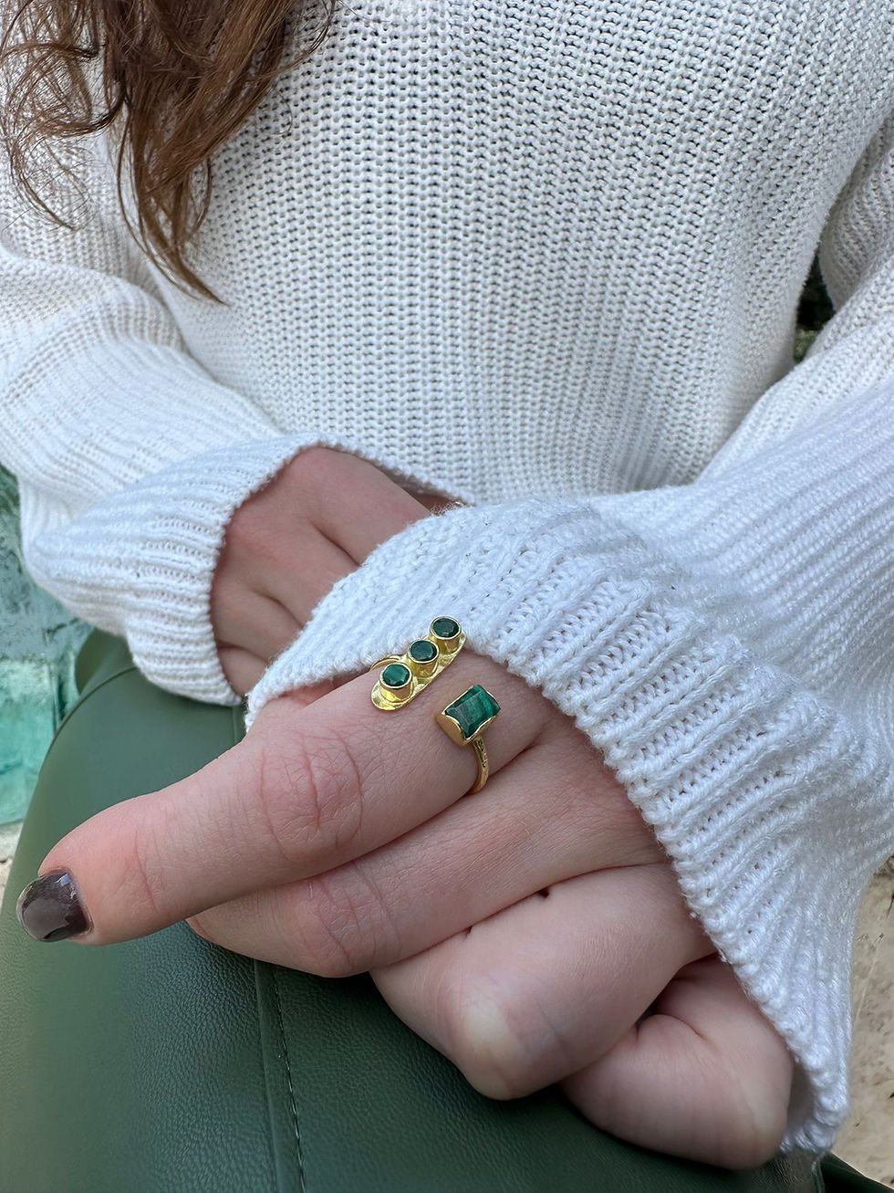 İki kol yeşil doğal taş yüzük